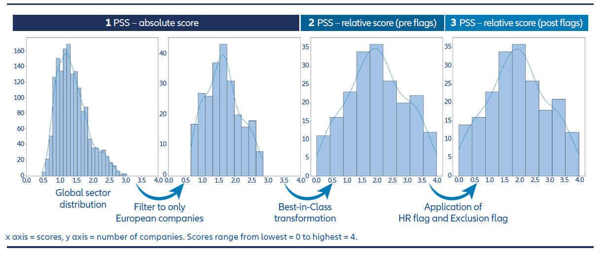 Source: AllianzGI, 2025. PSS: Proprietary Sustainability Score. HR Flag: Human Rights Flag. For illustration purposes only.